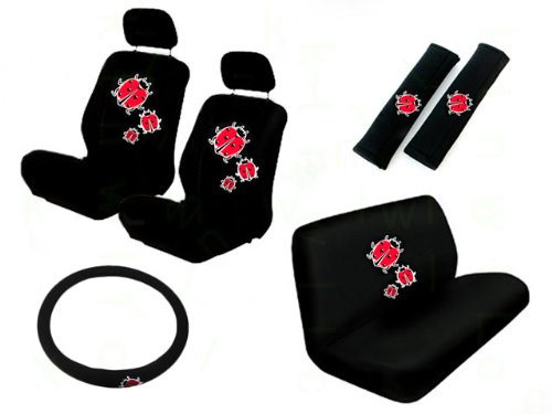 11 Piece Auto Interior Gift Set - Spring Red Ladybugs - A Set of 2 Seat Covers, 1 Rear Bench Cover, 1 Steering Wheel, and A Set of 2 Seat Belt Pads Review