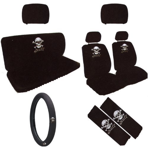 11PC White Grey Skull Low Back Seat Covers Bench Seat Cover Shoulder Pads Steering Wheel Cover Head Rest Covers Combo Kit Review